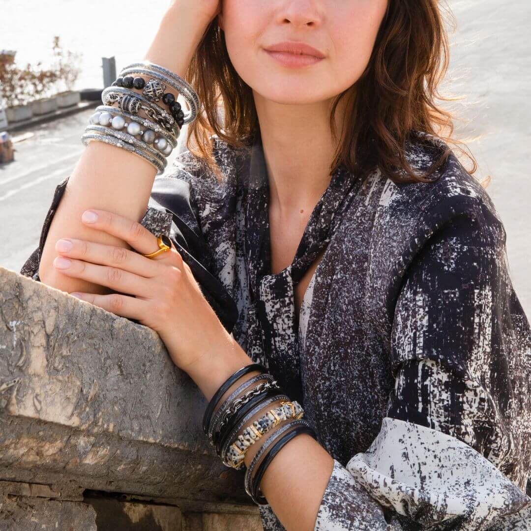 Achtsames Glamour-Ritual: Pause. Atme. Schiebe jeden deiner Three Queens AWB® an dein Handgelenk und konzentriere dich dabei auf deine Absicht für jedes Armband, basierend auf dem Verständnis, dass du bist, was du denkst. Mach den heutigen Tag zu einer schönen Erinnerung.