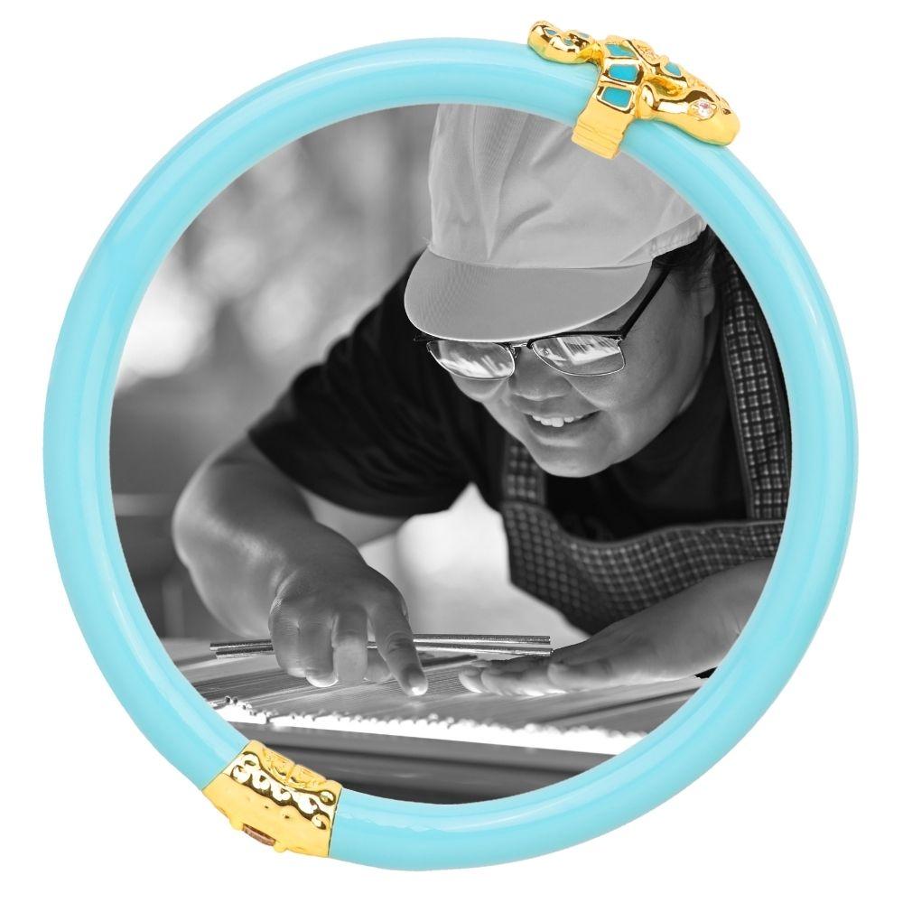 The main visionary artisan behind this bangle is Pukki, whose meticulous craftsmanship brings this piece to life. Handcrafted in Bangkok, each bangle is a testament to artistry and tradition, blending modern design with timeless techniques. Made with care, it reflects the skill and dedication of its maker, ensuring a piece that is as meaningful as it is beautiful.