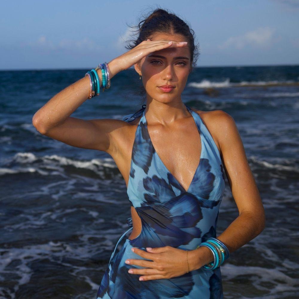Turquoise SeahorseGrazioso e ultraterreno, il cavalluccio marino è un simbolo di pazienza, fascino e forza silenziosa. Il nostro Turquoise Seahorse Fauna All Weather Bangle rende omaggio a questa incantevole creatura marina in una splendida fusione di arte e significato.
