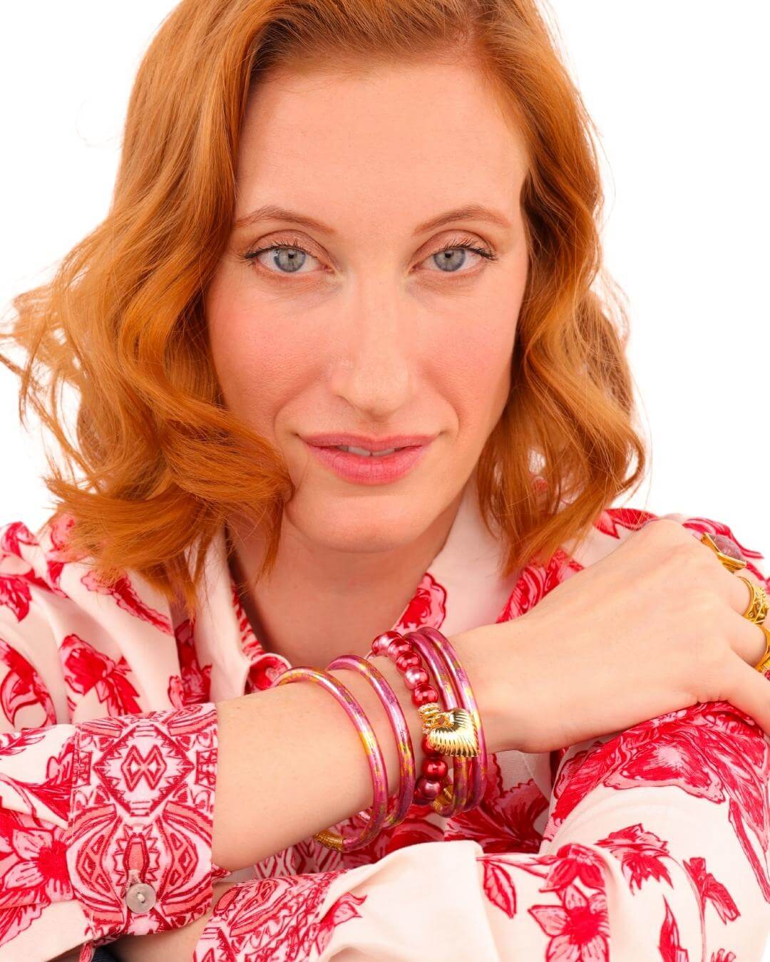 BuDhaGirl KOI Rose Bangles Bracelets | Set di 4 | Rosso lussuoso Vai al contenuto
