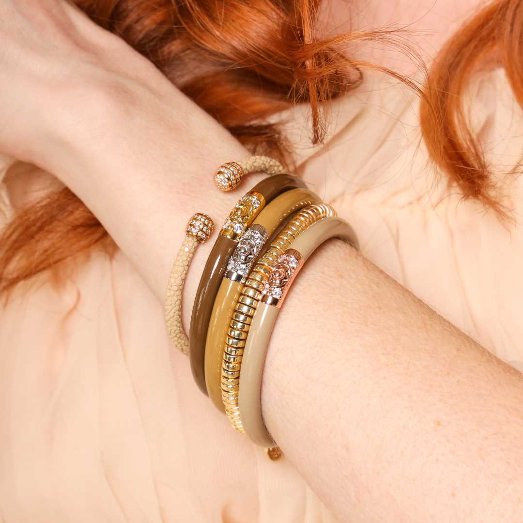 BuDhaGirl ama il colore e mai come in questo caso, quando abbiamo creato una gamma di colori di un'unica tonalità, abbiamo fatto una All Weather Bangles® che irradia eleganza e raffinatezza.